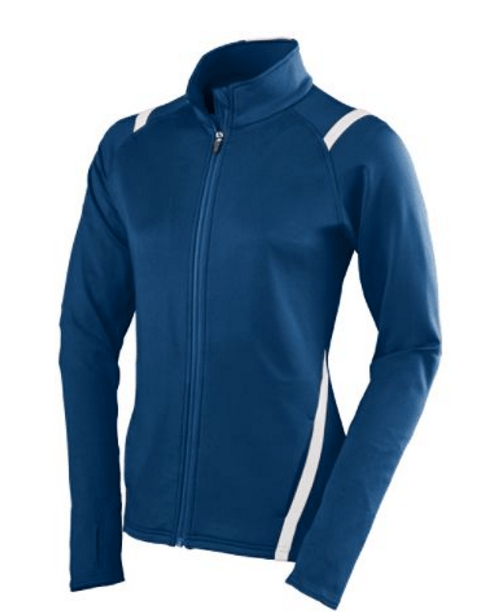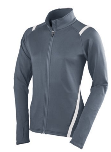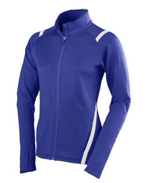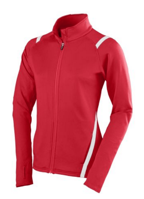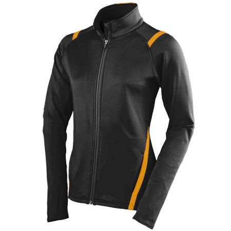 These jackets are Brushed back 90% polyester/10% spandex knit with soft brushed back poly/spandex knit offers 4-way stretch. Wicks moisture away from the body. Front zipper with zipper garage and raglan sleeves with thumb holes for warmth. Contrast color inserts on back of collar, shoulder and front . Frontseam pockets with open bottom. * Girls fit
