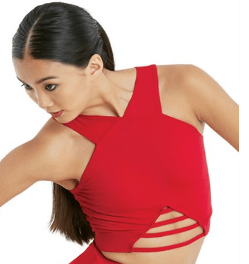 This crop top features wide straps and a strappy detail in front. All sizes are fully lined in front. Imported.